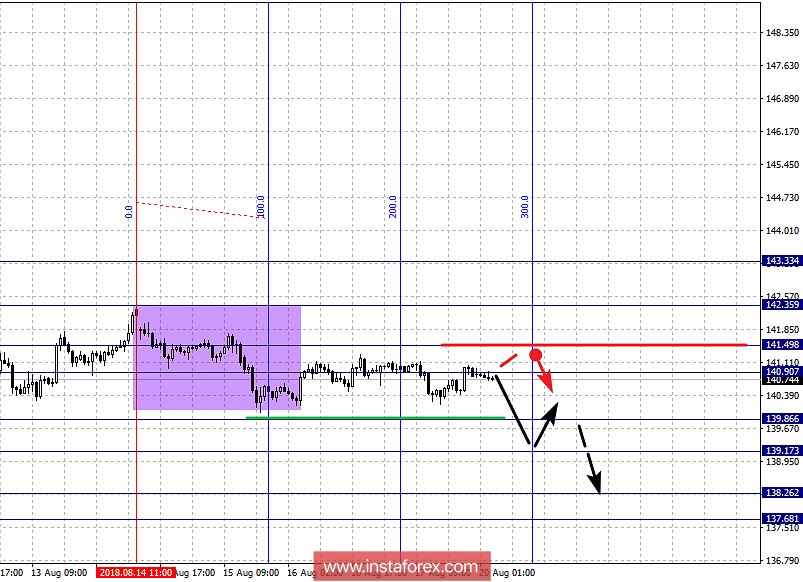 Para el par GBP/JPY, los niveles claves en la escala de H1 son: 142.35, 141.49, 140.90, 139.86, 139.17, 138.26 y 137.68. Aquí, el precio forma una estructura bajista local del 14 de agosto. La tendencia bajista a corto plazo es posible en el rea de 139.86 - 139.17. La ruptura del último valor llevar al desarrollo de un movimiento pronunciado. Aquí, el objetivo es 138.26. El valor potencial para el piso es el nivel de 137.68. Cerca a este nivel, esperamos la consolidación y también un retroceso alcista.