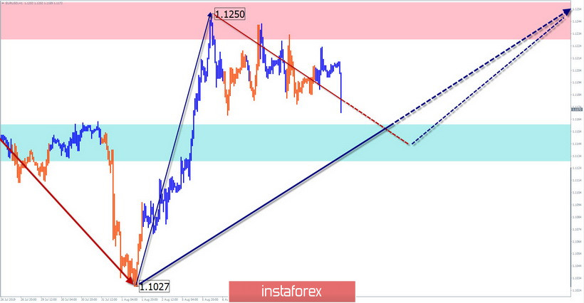 Empezando desde el 1 de agosto, la dirección de la tendencia a corto plazo del euro se estableció por la estructura alcista de la onda. Dentro de este marco de tiempo, se ha desarrollado una corrección planta durante la semana pasada.