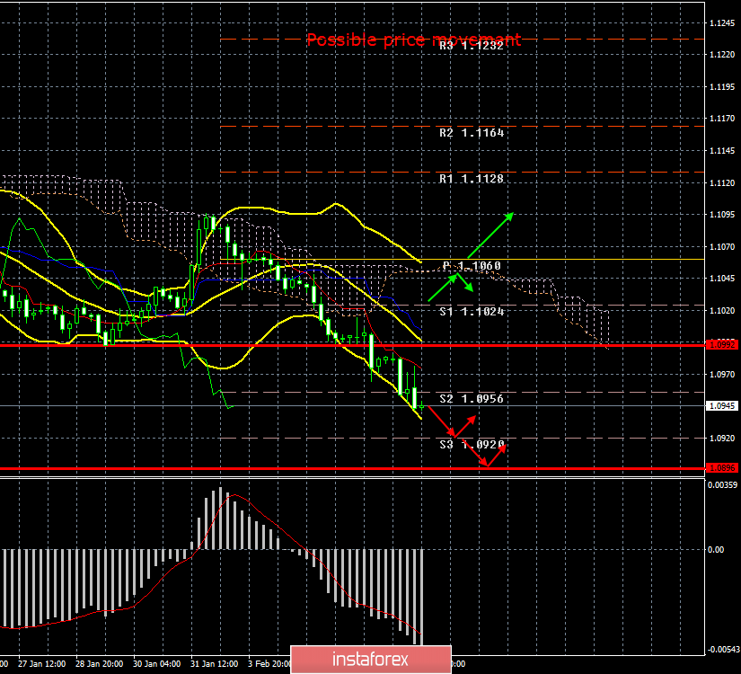 This is all that can be said on Friday's macroeconomic background. What else could happen to the euro on this day if the only report in the Eurozone failed miserably, and all the data from across the ocean turned out to be strong? Based on the general picture of things, we continue to lean towards the option in which the euro continues to slide towards price parity with the US dollar. In the past two years, we can say nothing else, except that the American economy looks much stronger than the European one. Yes, the US economy is also under pressure due to a slowdown in global growth rates, because of trade conflicts, and it can also respond to the "coronavirus" in the near future, which will reduce business activity in China, and therefore in many countries - partners of China. However, the European economy is slowing down in the same way and its rates are much lower than the US. Therefore, the euro can be adjusted in the long run and it can rebound to new areas of support. More so, it can even be in demand from time to time, but the general trend will remain downward. Accordingly, the trading strategy for the EUR / USD pair remains the same: working out all the sell signals.