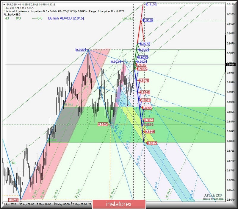 Qué sucederá con los pares de divisas EUR/GBP, GBP/JPY, y EUR/JPY en el marco de tiempo H4: opciones para el desarrollo del movimiento del 19 de junio de 2020