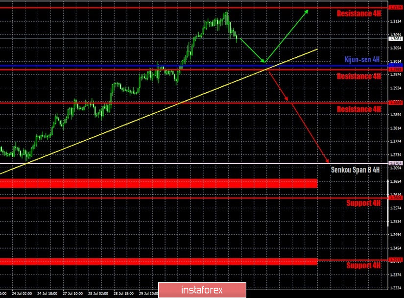 1) Buyers are still the dominant traders in the pound/dollar market, but at the moment there is a correction. The last target was almost reached, the pair did not have enough to hit it just a few points. Thus, in the event of a rebound from the trend line or the Kijun-sen line, we recommend buying the pound again with the goal of 1.3174. All target levels will be updated today. The potential Take Profit in this case will be about 150 points.