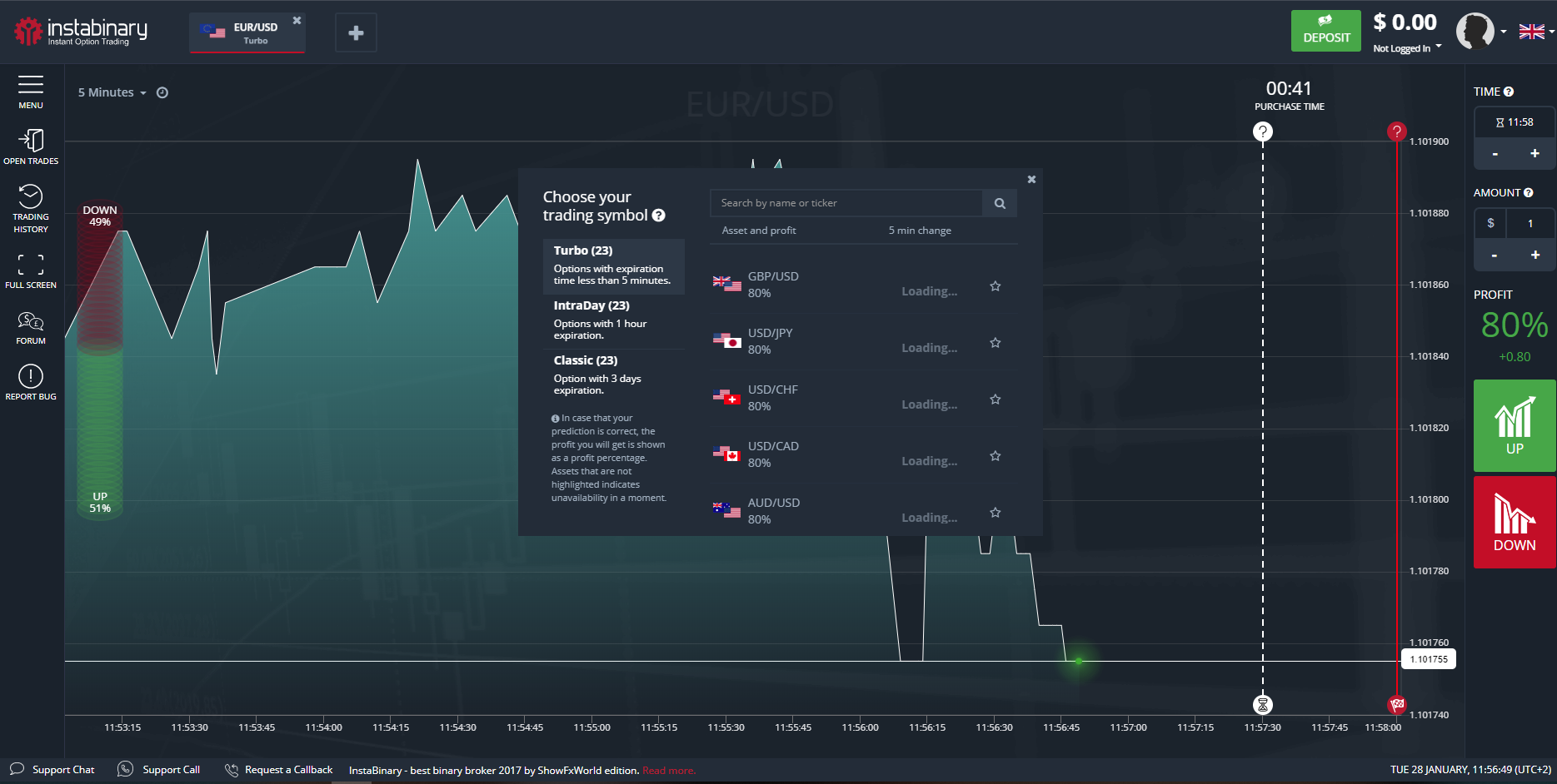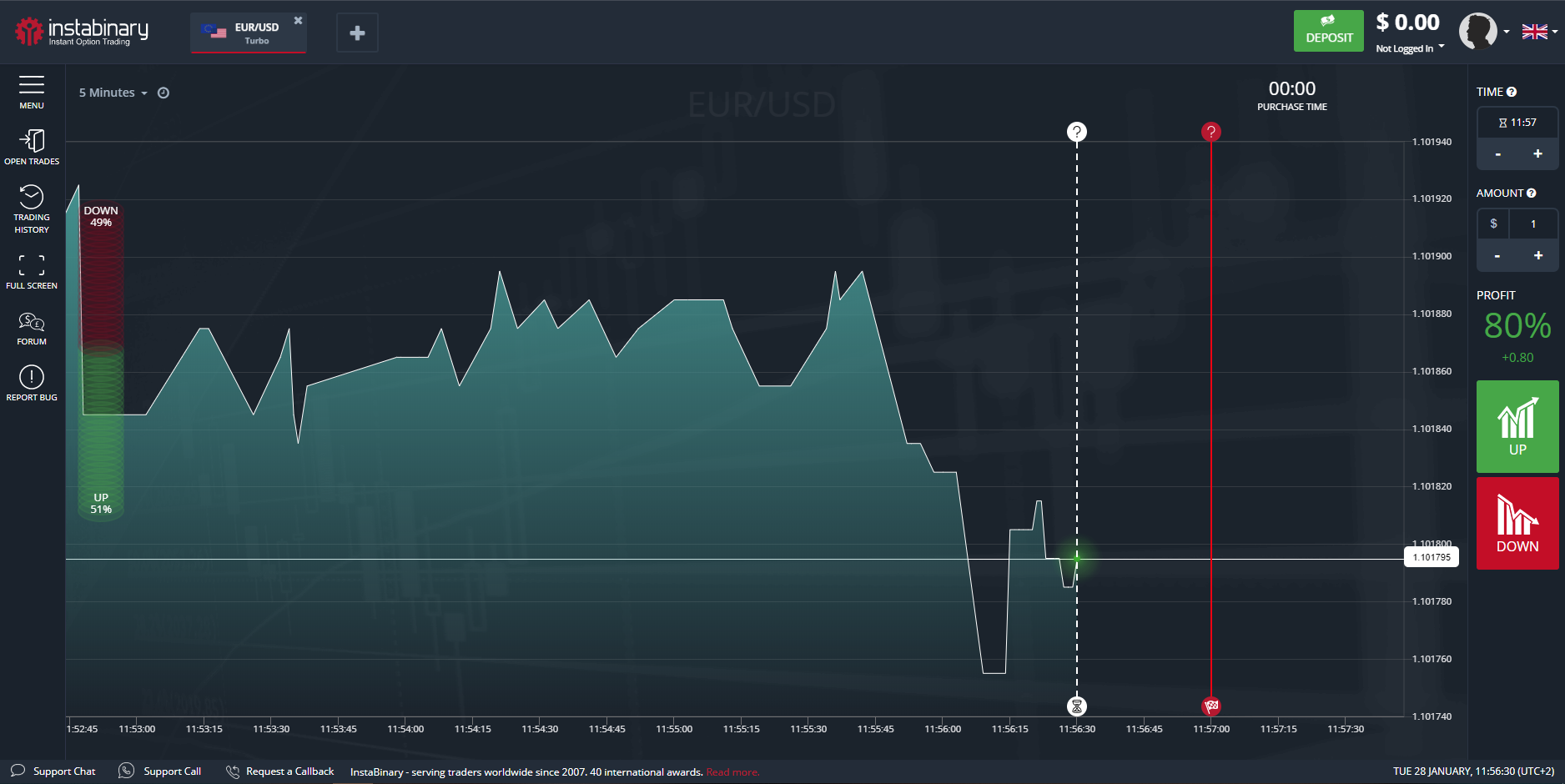 InstaTick Trader is an in-house trading platform developed by InstaSpot. It is intended for making tick trades. Its key advantage is 6-digit quotes. This feature enables traders to boost profits because even minor fluctuations matter a lot when it comes to profit forecasting. With InstaTick Trader, traders can make deals and monitor market developments in a web browser with no downloads required.