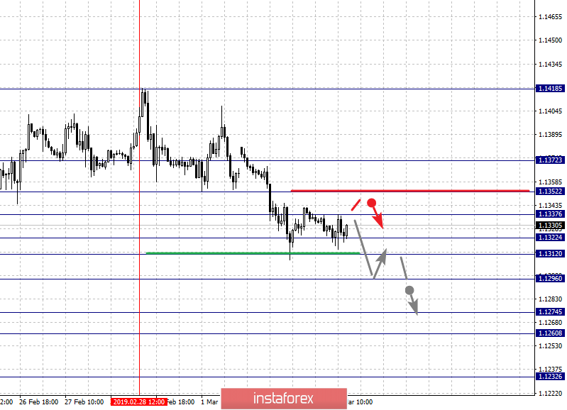 По паре Евро/Доллар ключевыми уровнями в масштабе Н1 являются: 1.1372, 1.1352, 1.1337, 1.1322, 1.1312, 1.1296, 1.1274, 1.1260 и 1.1232. Здесь мы следим за нисходящей структурой от 28 февраля. Продолжения движения книзу ожидаем после прохода ценой шумового диапазона 1.1322 – 1.1312, в данном случае цель – 1.1296, возле этого уровня консолидация. Пробой уровня 1.1296 должен сопровождаться выраженным восходящим движением, здесь цель – 1.1274, в коридоре 1.1274 – 1.1260 консолидация цены. Потенциальным значением для низа считаем уровень 1.1232, по достижении которого ожидаем откат в коррекцию.