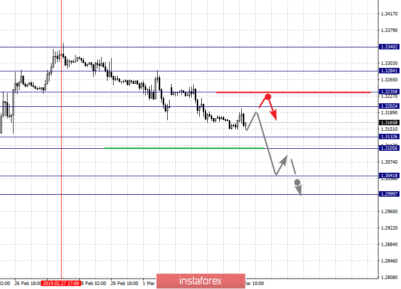 Краткосрочное восходящее движение ожидаем в коридоре 1.3202 – 1.3235, пробой последнего значения приведет к углубленной коррекции, здесь цель – 1.3284, этот уровень является ключевой поддержкой для нисходящей структуры от 27 февраля.