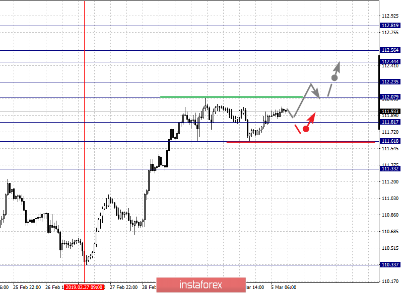 Краткосрочное нисходящее движение возможно в коридоре 111.81 – 111.61, пробой последнего значения приведет к затяжной коррекции, здесь цель – 111.33, этот уровень является ключевой поддержкой для восходящей структуры от 27 февраля.
