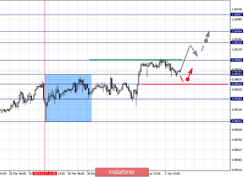 Краткосрочное нисходящее движение возможно в коридоре 0.9975 – 0.9961, пробой последнего значения приведет к затяжной коррекции, здесь цель – 0.9938, этот уровень является ключевой поддержкой для верха.
