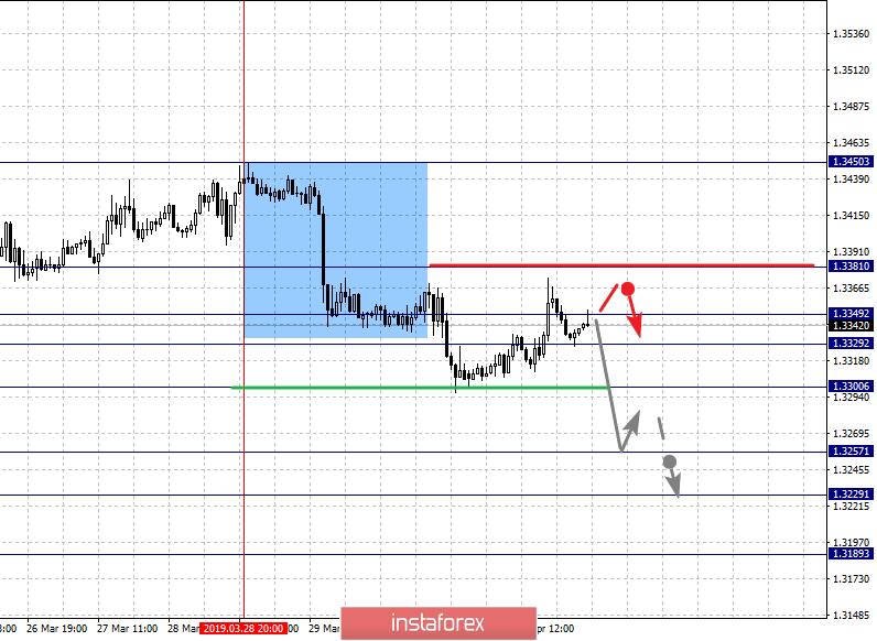 Консолидированное движение возможно в коридоре 1.3329 – 1.3349, пробой последнего значения приведет к затяжной коррекции, здесь цель – 1.3381, этот уровень является ключевой поддержкой для нисходящей структуры от 28 марта.
