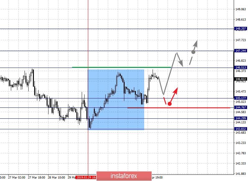 Краткосрочное нисходящее движение возможно в коридоре 145.17 – 144.76, пробой последнего значения приведет к затяжной коррекции, здесь цель – 144.29, этот уровень является ключевой поддержкой для восходящей структуры.