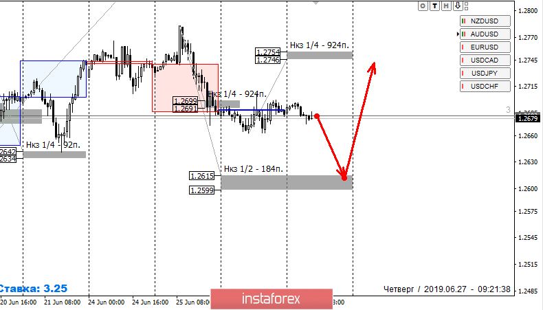 Восходящее движение прошлой недели было импульсным, однако в начале текущей недели произошло формирование паттерна "ложный пробой". Это дает возможность работать в продажи. Первой целью снижения является НКЗ 1/2 1.2615-1.2599, тест которой будет определяющим для всего восходящего движения.