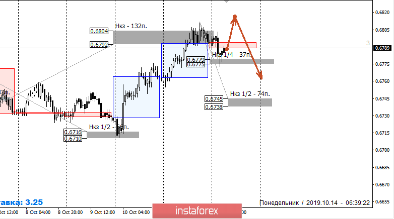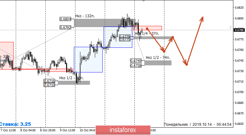 Модель разворота станет актуальной в случае, если закрытие сегодняшней американской сессии произойдет ниже НКЗ 1/4 0.6779-0.6775. Это позволит рассматривать коррекционные продажи к НКЗ 1/2 0.6745-0.6738, тест которой определит дальнейший приоритет на вторую половину месяца.