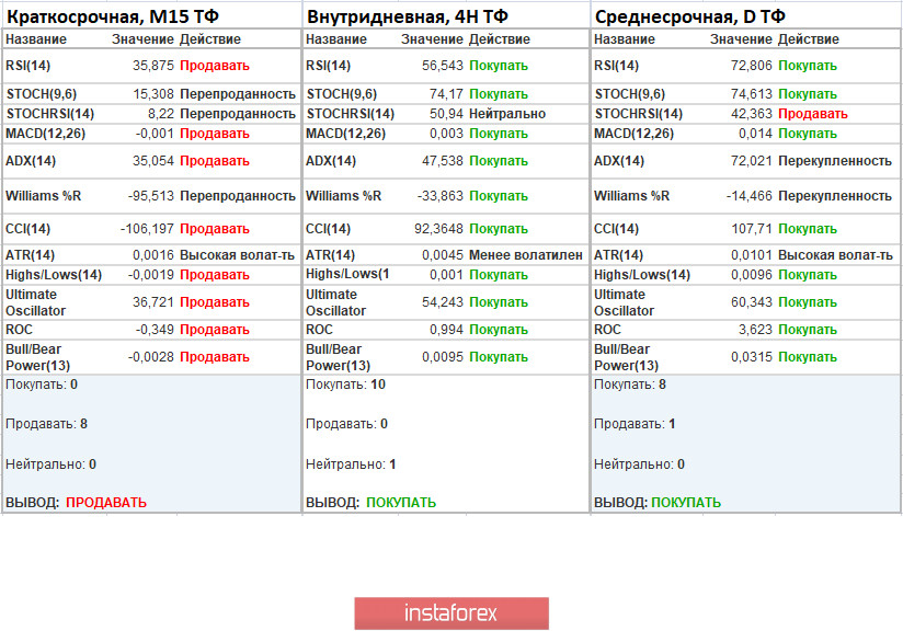 Анализируя разный сектор таймфреймов (ТФ), мы видим, что показатели технических инструментов на минутных интервалах сигнализируют о продаже за счет отскока от локального максимума. Часовой и дневной интервал сигнализируют покупке, ориентируясь на инерционный восходящий ход цены.