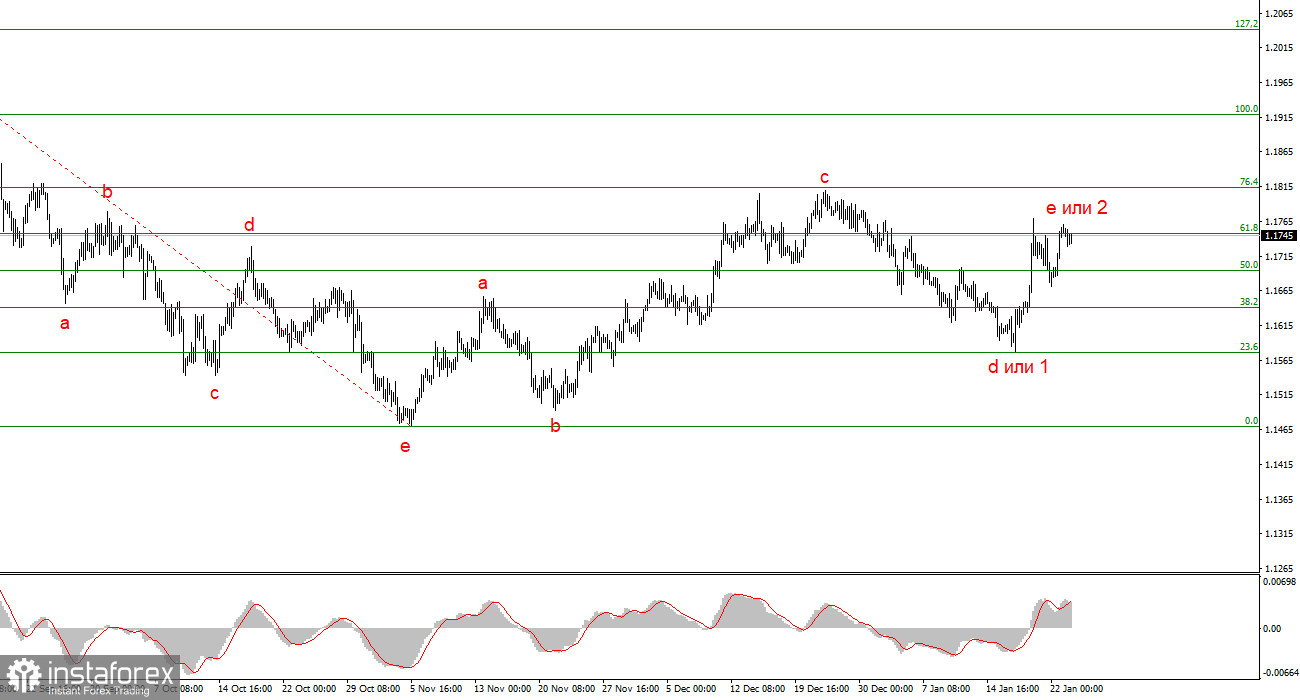 Курс инструмента EUR/USD в течение пятницы практически не изменился. Амплитуда движений была низкой, рынок как будто забыл о всех событиях текущей недели. Однако о них, вероятно, действительно следует уже забыть. Дональд Трамп на экономическом форуме в Давосе сообщил, что отменяет свое решение о новых торговых пошлинах для некоторых стран Европейского союза, так как были достигнуты договоренности по острову Гренландия с главой НАТО Марком Рютте. На текущий момент времени доподлинно неизвестно, что это за договоренности, но Европейский союз уже принял решение продолжить процесс ратификации торгового соглашения в США, достигнутого в прошлом году. Конфликт можно считать исчерпанным.