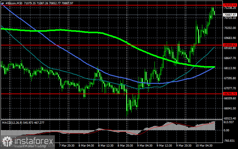 Что касается технической картины Bitcoin, то покупатели сейчас нацелены на возврат уровня $71 300, который открывает прямую дорогу на $73 000, а там уже и рукой подать до уровня 74 600. Самой дальней целью выступит максимум в районе $77 400, преодоление которого будет означать попытки возврата бычьего рынка. В случае падения биткоина покупателей жду на уровне $69 300. Возврат торгового инструмента под эту область может быстро свалить BTC в район $66 700. Самой дальней целью будет область $64 900.
