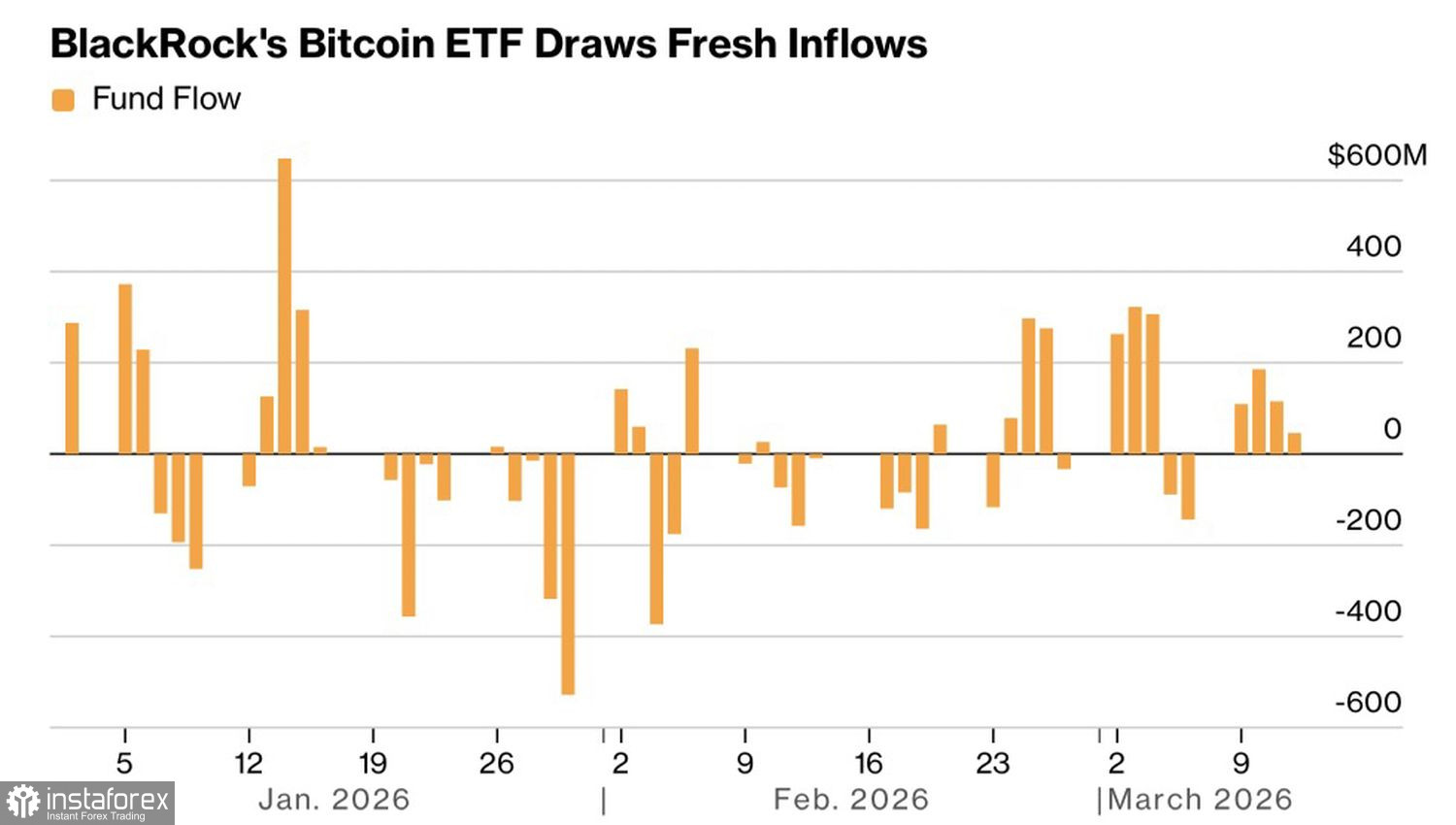 Несмотря на более продолжительное противостояние, чем изначально предполагалось, деньги потекли в ориентированные на криптовалюту ETF. На неделе к 13 марта специализированные биржевые фонды привлекли $763 млн. Речь идет о приливе капитала на протяжении трех пятидневок подряд. За этот период запасы финансовых институтов выросли на $1,3 млрд.