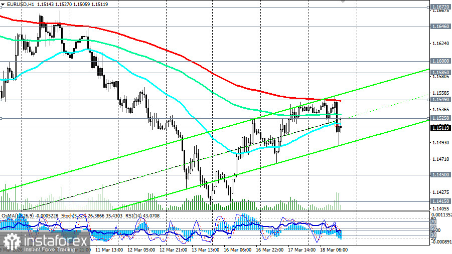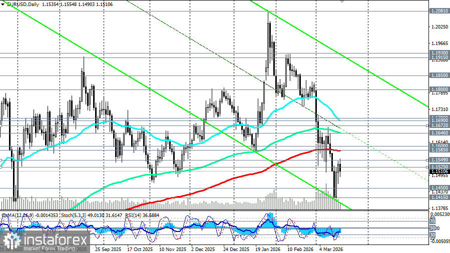 Однако техническая картина остается неоднозначной. Пара держится ниже ключевого уровня сопротивления 1.1585 (ЕМА200 на дневном графике) и 1.1549 (ЕМА200 на 1-часовом графике), что ограничивает попытки восстановления (см. наш сегодняшний обзор «EUR/USD: сценарии динамики на 18.03.2026»).