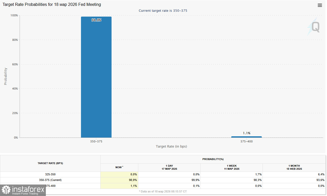 Однако главное внимание будет приковано к Сводке экономических прогнозов (SEP) и точечному графику («dot plot»). Инвесторы практически не видят шансов на снижение ставки в марте, апреле или июне, закладывая более 75% вероятность сохранения политики и в июне. Рынки теперь ожидают только одного снижения ставки в этом году по сравнению с тремя, ожидавшимися до начала войны в Иране.
