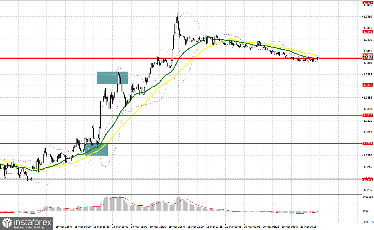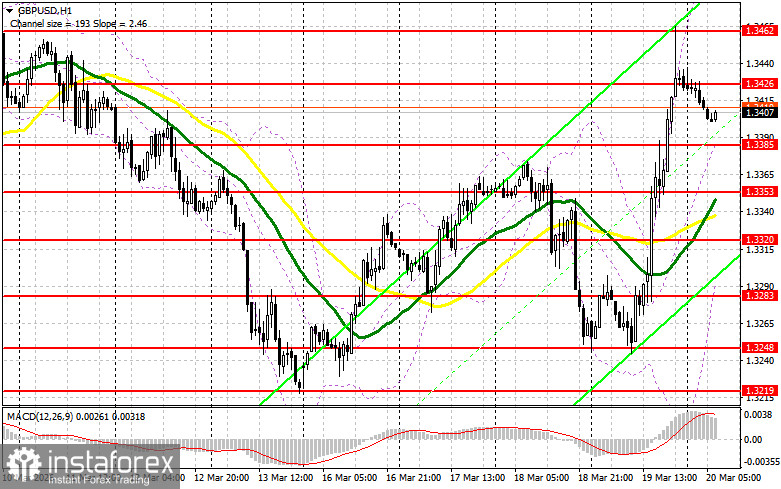 Вчера все девять членов Банка Англии проголосовали за сохранение процентных ставок на уровне 3,75% и предупредили, что следующим шагом может стать повышение ставок для борьбы с растущей инфляцией из-за войны на Ближнем Востоке. На этом фоне британский фунт продемонстрировал стремительный рост против американского доллара. Сегодня в первой половине дня ожидаются лишь данные по чистому объему заемных средств государственного сектора Великобритании и балансу промышленных заказов от конфедерации британских промышленников. При медвежьей реакции на отчеты можно будет воспользоваться снижением фунта для открытия длинных позиций в продолжение вчерашней бычьей тенденции. Формирование ложного пробоя в районе ближайшей поддержки 1.3385 приведет к хорошей точке входа в длинные позиции с восстановлением к уровню 1.3426, образованному по итогам вчерашнего дня. Прорыв и обратный тест сверху вниз этого диапазона увеличат шансы на укрепление GBP/USD, что приведет к сносу стоп-приказов продавцов и подходящей точке входа в длинные позиции с возможностью выхода к 1.3462, где ожидаю уже более активного проявления медведей. Самой дальней целью будет область 1.3512, где собираюсь фиксировать прибыль. При сценарии снижения GBP/USD и отсутствия активности со стороны покупателей на 1.3385, давление на фунт увеличится, что приведет к движению в район следующей поддержки 1.3353. Лишь формирование там ложного пробоя будет подходящим условием на открытие длинных позиций. Покупать GBP/USD сразу на отскок собираюсь от минимума 1.3320 с целью коррекции в 30-35 пунктов внутри дня.
