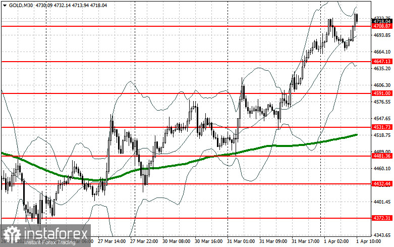 Что касается текущей технической картины золота, то покупателям нужно забирать ближайшее сопротивление $4708. Это позволит нацелиться на $4771 выше которого пробиться будет довольно проблематично. Самой дальней целью выступит области $4835. В случае падения золота медведи попытаются забрать контроль над $4647. Если это удастся сделать, пробой диапазона нанесет серьезный удар по позициям быков и столкнет Gold к минимуму $4591 с перспективой выхода на $4531.