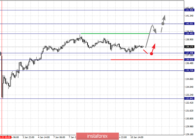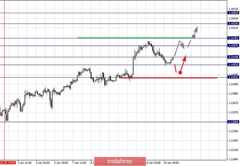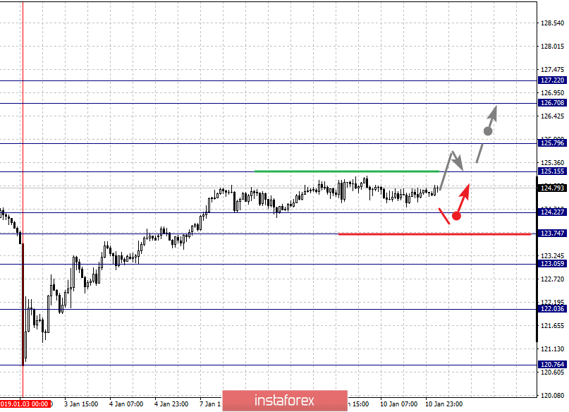 По паре Евро/Доллар цена находится в корректировочной зоне от восходящей структуры от 2 января, уровень 1.1451 ключевая поддержка. По паре Фунт/Доллар продолжения развития восходящей структуры от 2 января ожидаем после пробоя 1.2813. По паре Доллар/Франк цена формирует выраженный потенциал для верха от 10 января. По паре Доллар/Иена цена находится в области нисходящей структуры от 8 января, продолжения движения книзу ожидаем после пробоя 107.96. По паре Евро/Иена продолжения движения кверху ожидаем после пробоя 125.15. По паре Фунт/Иена также продолжаем следить за развитием восходящей структуры от 3 января, уровень 139.50 является ключевым сопротивлением.