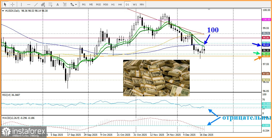 А ближайшую поддержку индекс нашёл на уровне 98,10 перед круглым уровнем 98,00.