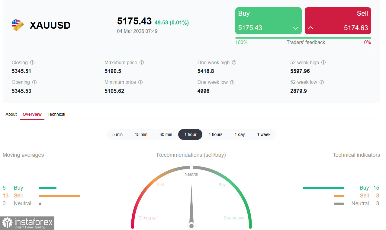 В среду 4 марта XAU/USD консолидируется чуть выше отметки 5150.00, терпя сопротивление ниже важного краткосрочного уровня 5180.00 (ЕМА200 на 1-часовом графике) и показывая скромный внутридневной рост около 1,50%. Это происходит на фоне продолжающихся опасений инвесторов по поводу затяжного конфликта на Ближнем Востоке. Президент США Дональд Трамп заявил, что военная операция в Иране может продлиться от четырех до пяти недель, и удары будут продолжаться столько, сколько потребуется.