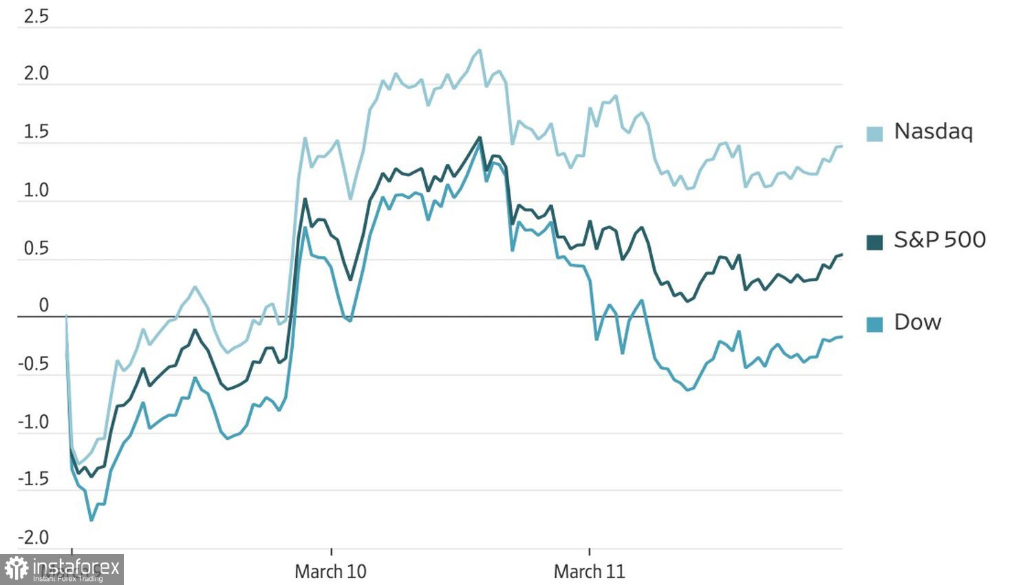 Фондовые индексы США уже который день катаются на американских горках. S&P 500 стартовал за здравие на сообщениях о продаже странами-членами МЭА 400 млн баррелей из стратегических резервов. По словам Дональда Трампа, такой шаг приведет к существенному снижение цен на нефть. Президент еще раз повторил, что конфликт на Ближнем Востоке скоро закончится, а противник сдастся. Впрочем, рынки уже не интересуют результаты противостояния США, Израиля и Ирана. Их больше волнуют сроки.