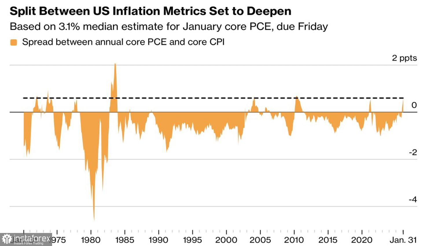 Динамика соотношения американских PCE и CPI