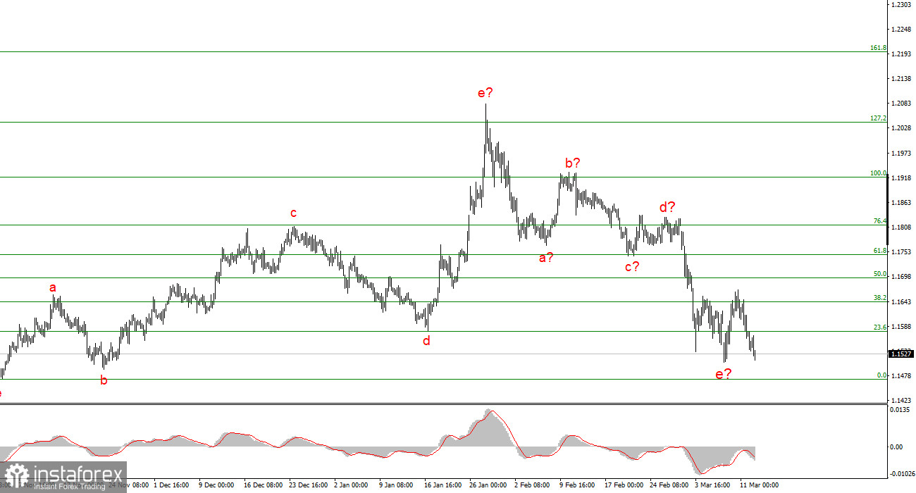 Исходя из проведенного анализа EUR/USD, я делаю вывод, что инструмент продолжает построение повышательного участка тренда, но в ближайшее время может его завершить из-за резко изменившегося новостного фона. Теперь рынки интересуются только стоимостью нефти и газа, а также обстановкой на Ближнем Востоке. На данный момент я еще не готов сделать вывод о завершении повышательного тренда, но и поверить в скорое завершение войны с Ираном тоже достаточно сложно. Следовательно, в ближайшее время волновая разметка может потребовать внесения коррективов.