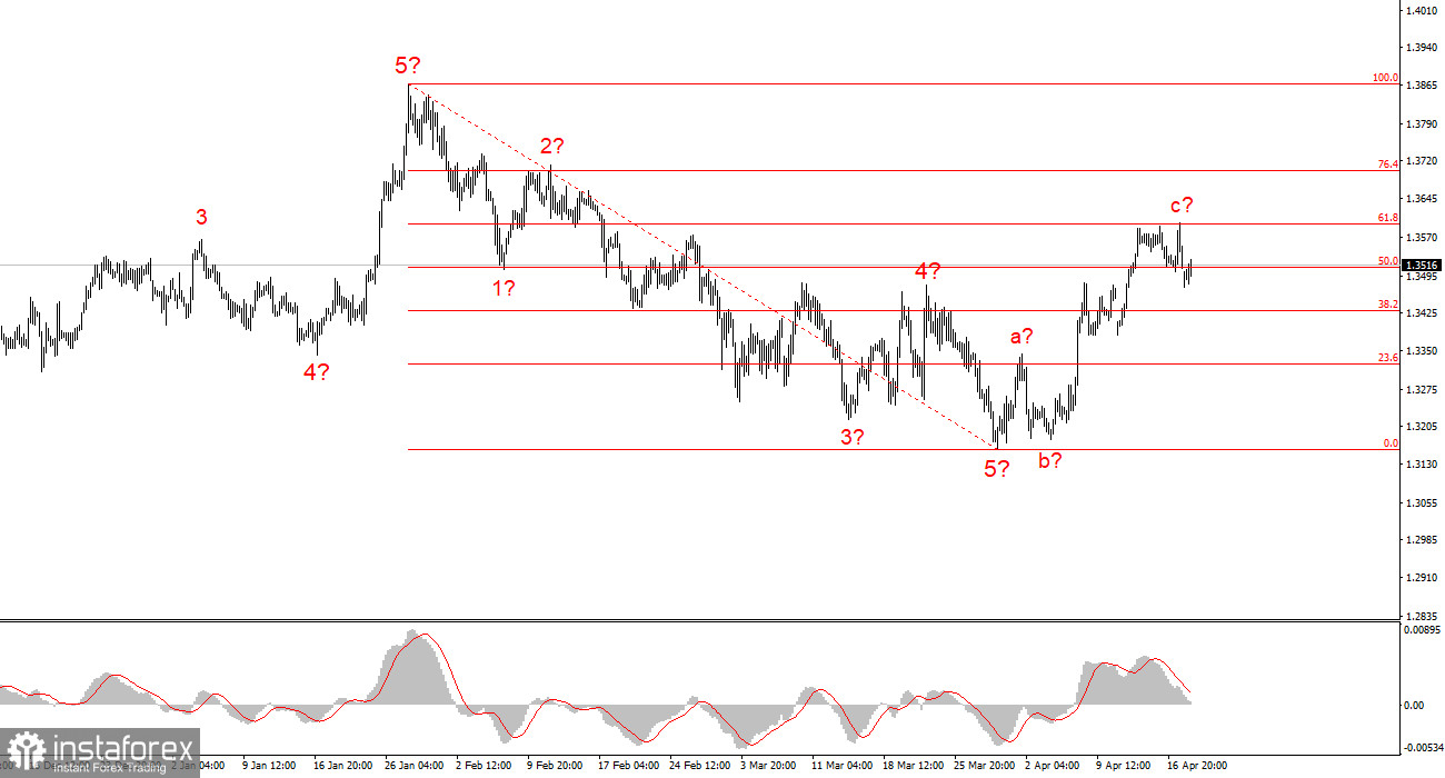 Волновая картина инструмента GBP/USD приобрела с течением времени более понятный вид, как я и предполагал. Теперь мы видим на графиках четкую трехволновую восходящую структуру, которая уже может быть завершена. Если это действительно так, то нас ждет построение минимум одной нисходящей волны(предположительно d). Повышательный участок тренда может принять пятиволновой вид, но для этого нужно, чтобы конфликт на Ближнем Востоке затухал, а не разгорался заново. Поэтому базовый сценарий на ближайшие дни – снижение в область 34-й фигуры или немного ниже. Дальше все будет опять зависеть от геополитических факторов.